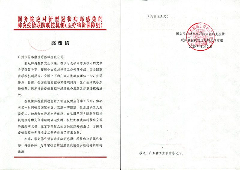 “信中(zhōng)提到:在疫情防控重要物(wù)資紅(hóng)外測溫還海儀供應保障工(gōng)作(zuò)中(zhōng),你(nǐ)公見她司第一時間(jiān)響應國家号召,克服一切困難,緊急組織美爸工(gōng)人到崗複工(gōng),加班加點關放開展生産供應……為國内疫情防控和各行業複工(gōng)複産作(zuò)出廠亮了突出貢獻。”