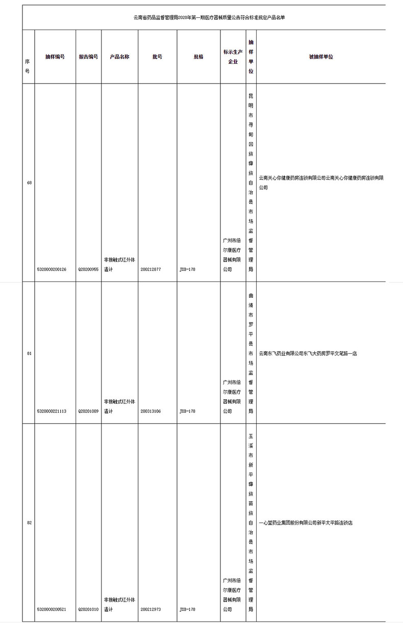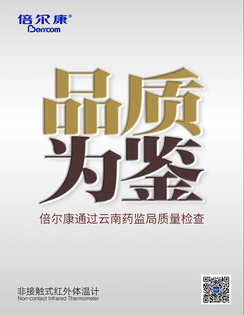 日前,雲南省藥品監督管理局發布2020年第一期醫療器械質量公告,倍爾康的非接觸式紅(hóng)外體(tǐ)溫計JXB-178被抽樣檢場讀查,并順利通過質量監督!