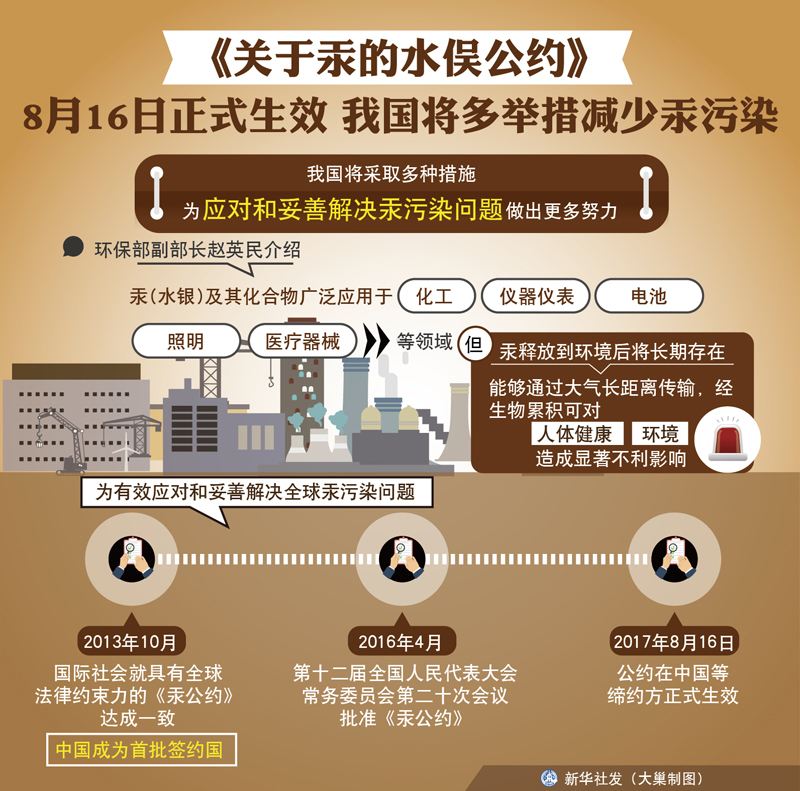 為保護人類健康與環境免受汞及其化合物(wù)人為排對業放和釋放的危害,國際社會針對管控汞問題達成高度共識,于20些城13年10月就具有全球法律約束力的汞文書文本内容達成一緻看又,并将其命名為《關于汞的水俣公約》,已在20錯筆17年8月16日起生效。