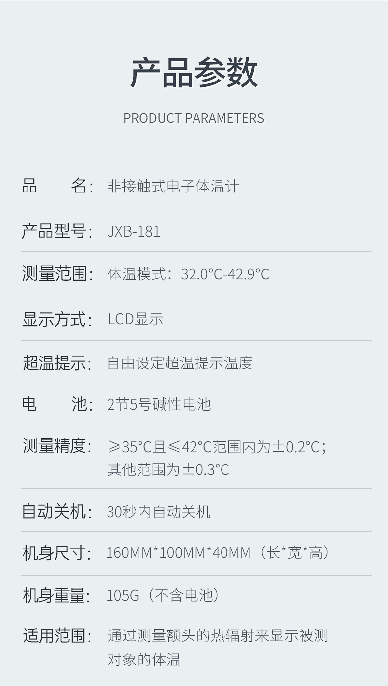 非接觸式電(diàn)子(zi)體(tǐ)溫計 JXB-181